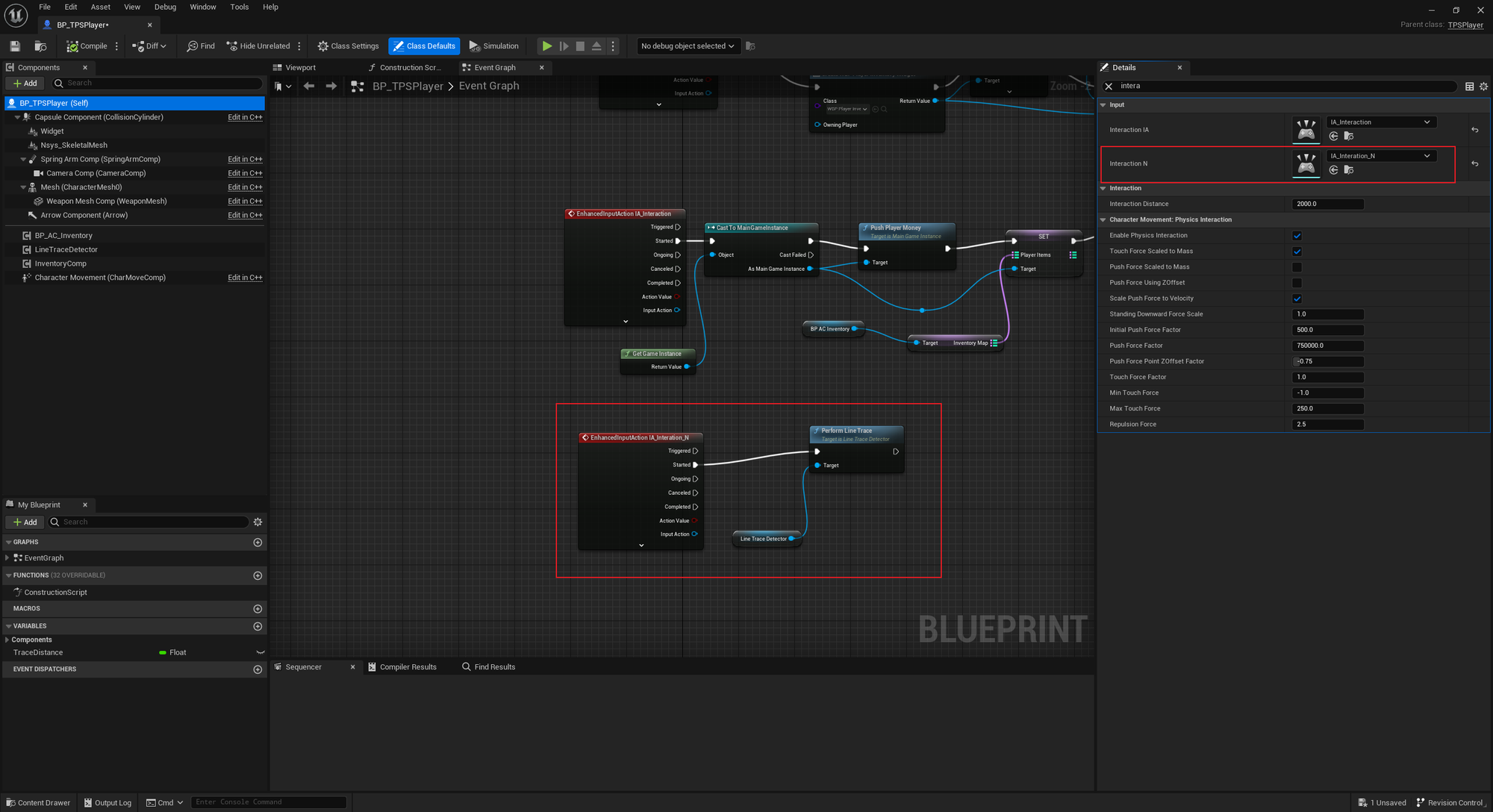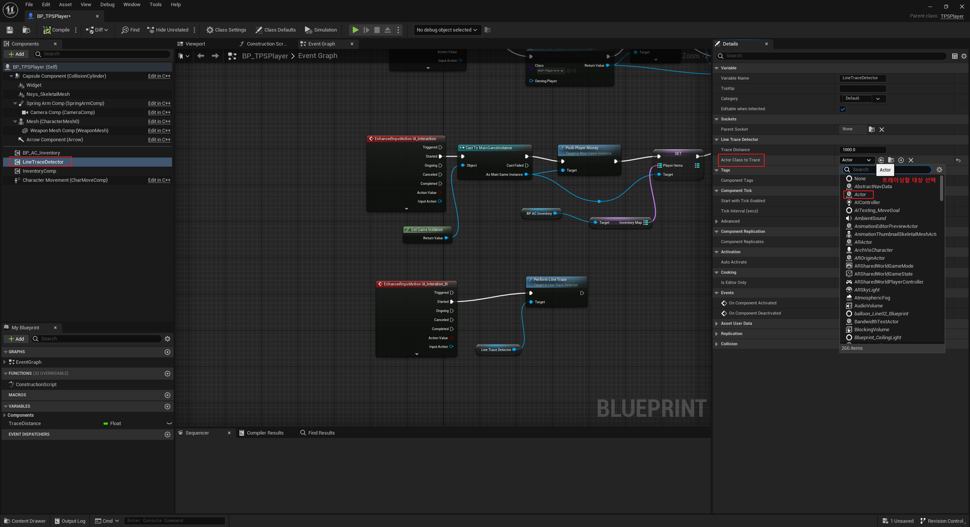 블루프린트로 인풋 액션 / LineTrace 셋팅하기