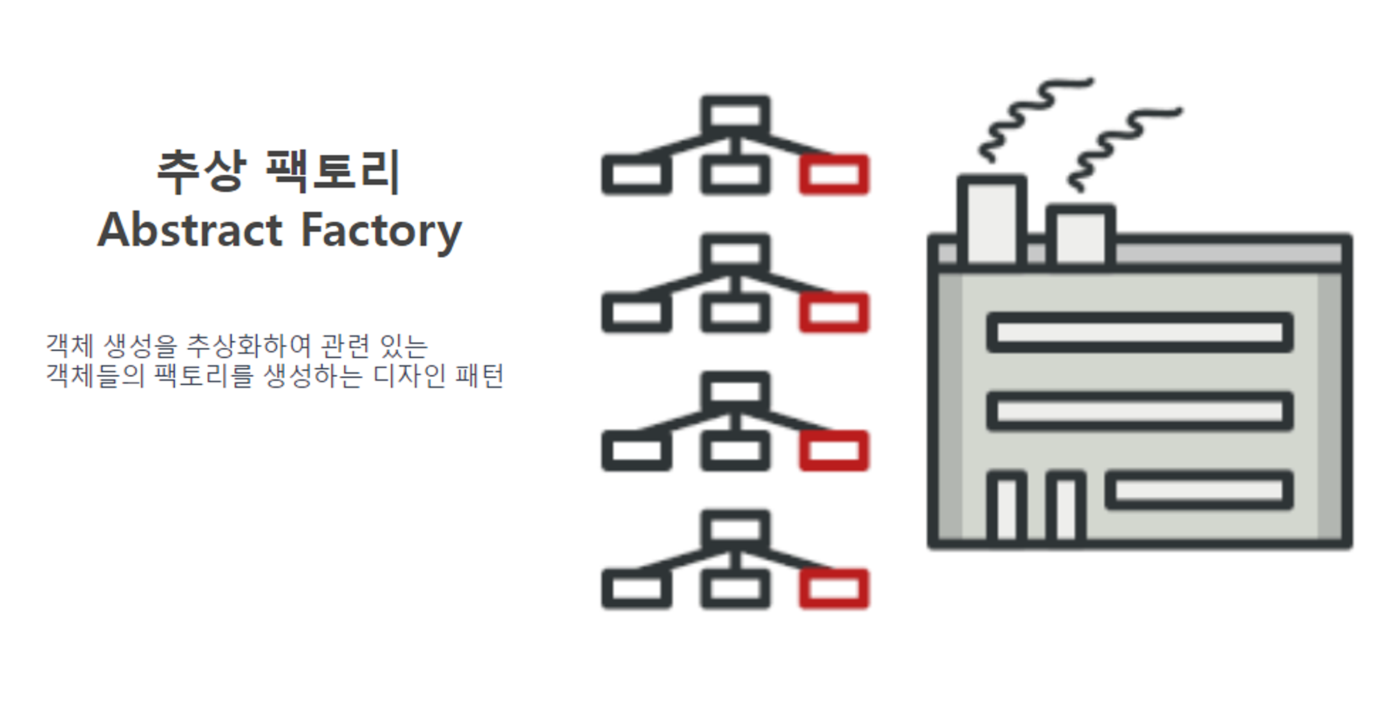 - 객체 생성을 추상화(껍데기만) 하여 객체 생성의 구체적인 클래스를 분리