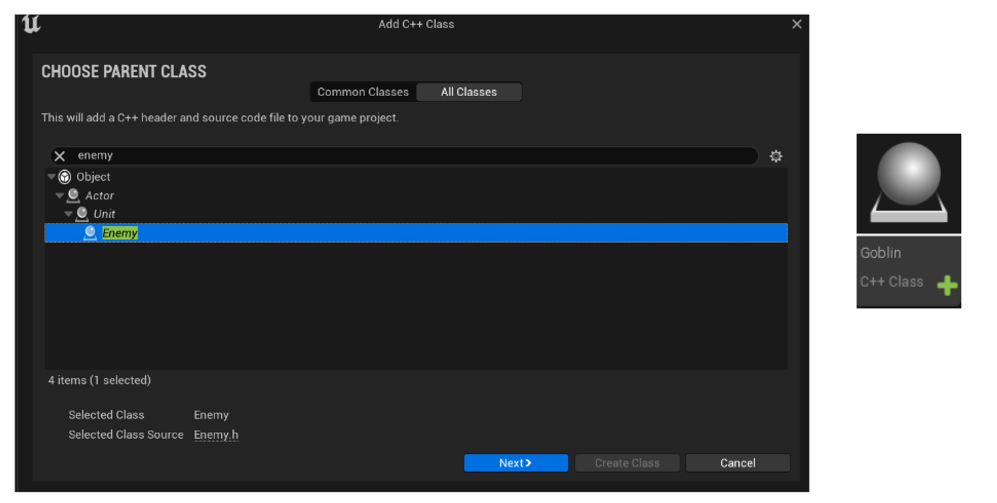 과정 3) Enemy를 상속 받은 Goblin 생성 → Enemy Class의 추상 함수를 Override 구현